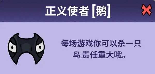 正义使者–你可以毫无后果地杀死任何一名玩家,可以是鹅或鸭。